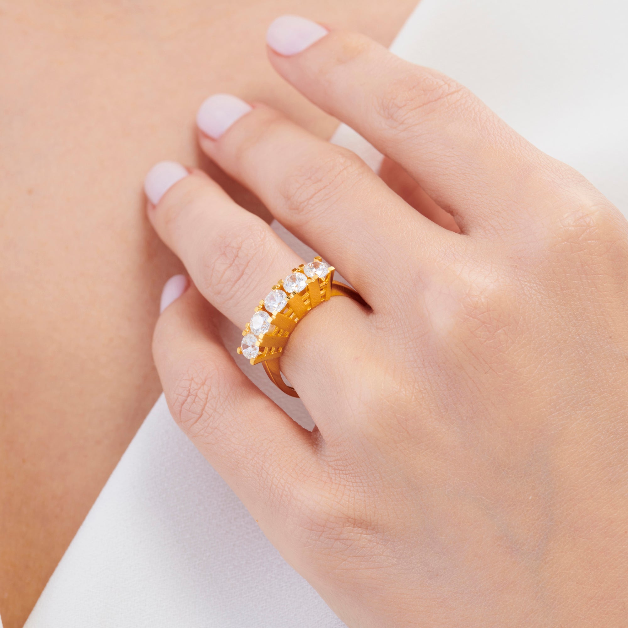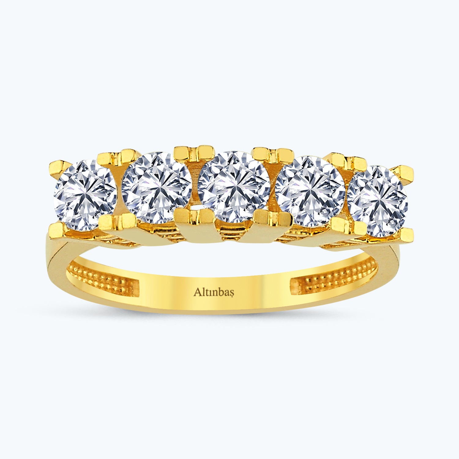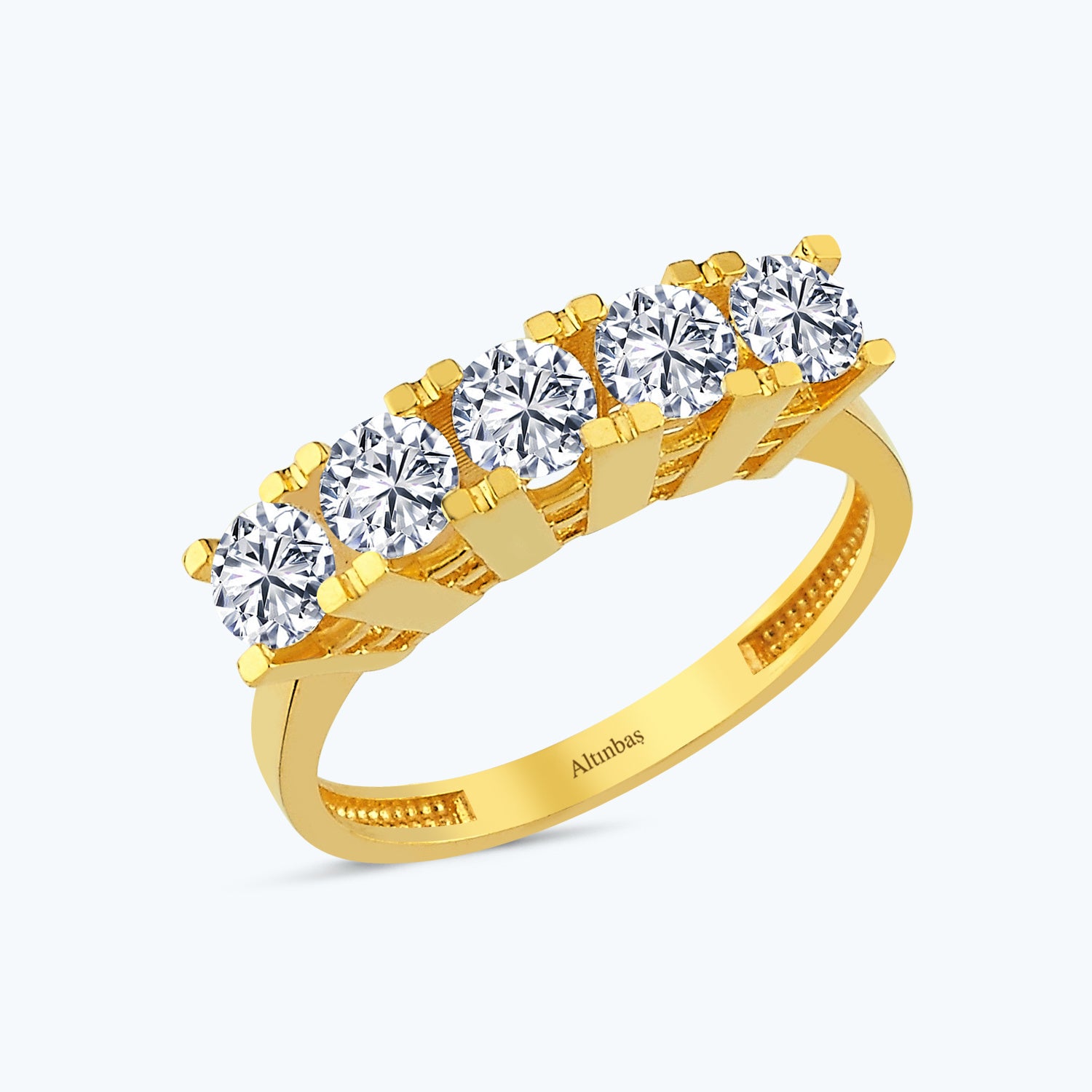 Altınbaş Jewellery 22 ct Five Stone Gold Ring is carefully handcrafted from 22K Solid Gold with a dainty design by experienced craftsmen.