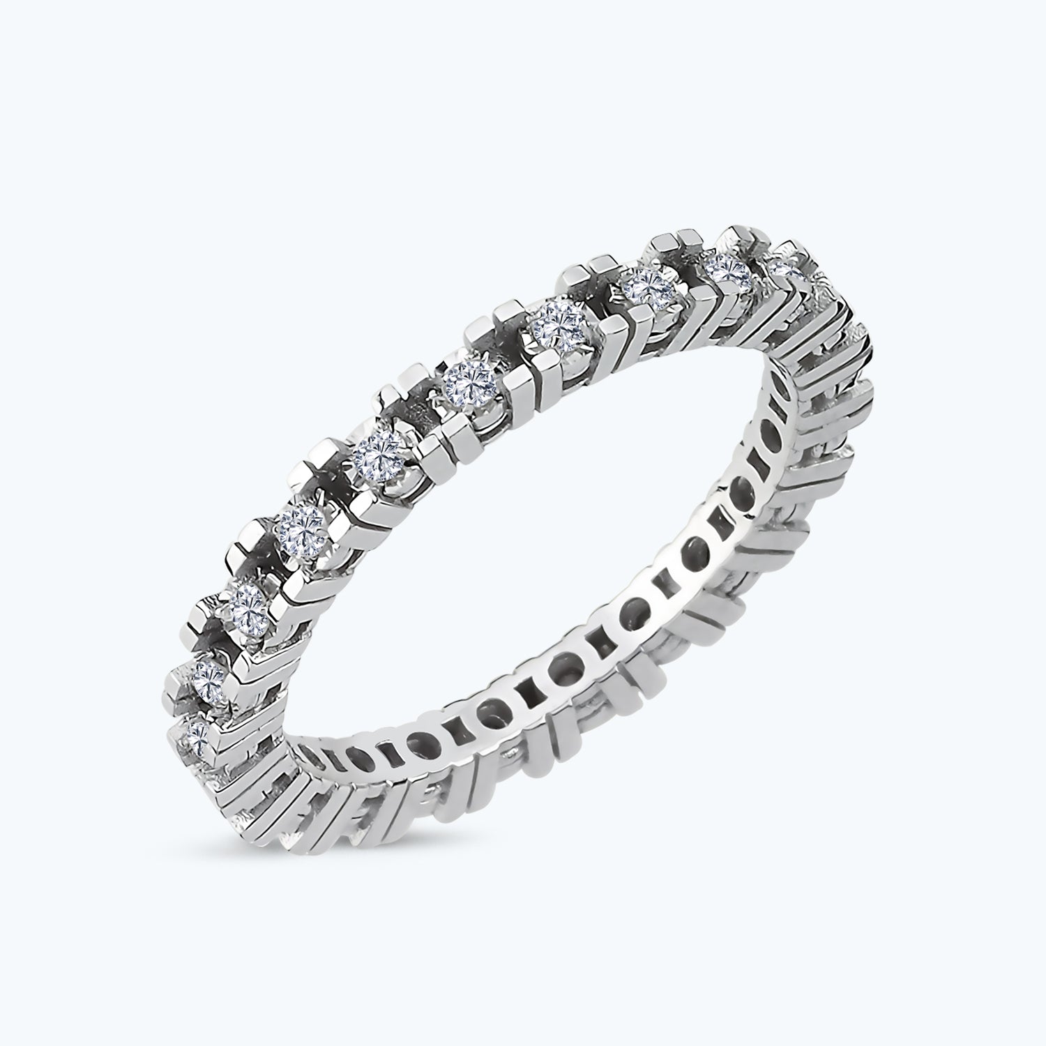With a dainty design, the Altınbaş Jewellery Eternity Diamond Ring is carefully handcrafted from 18ct Solid Gold with the most sparkling pure diamond selected and carefully set by experienced craftsmen.