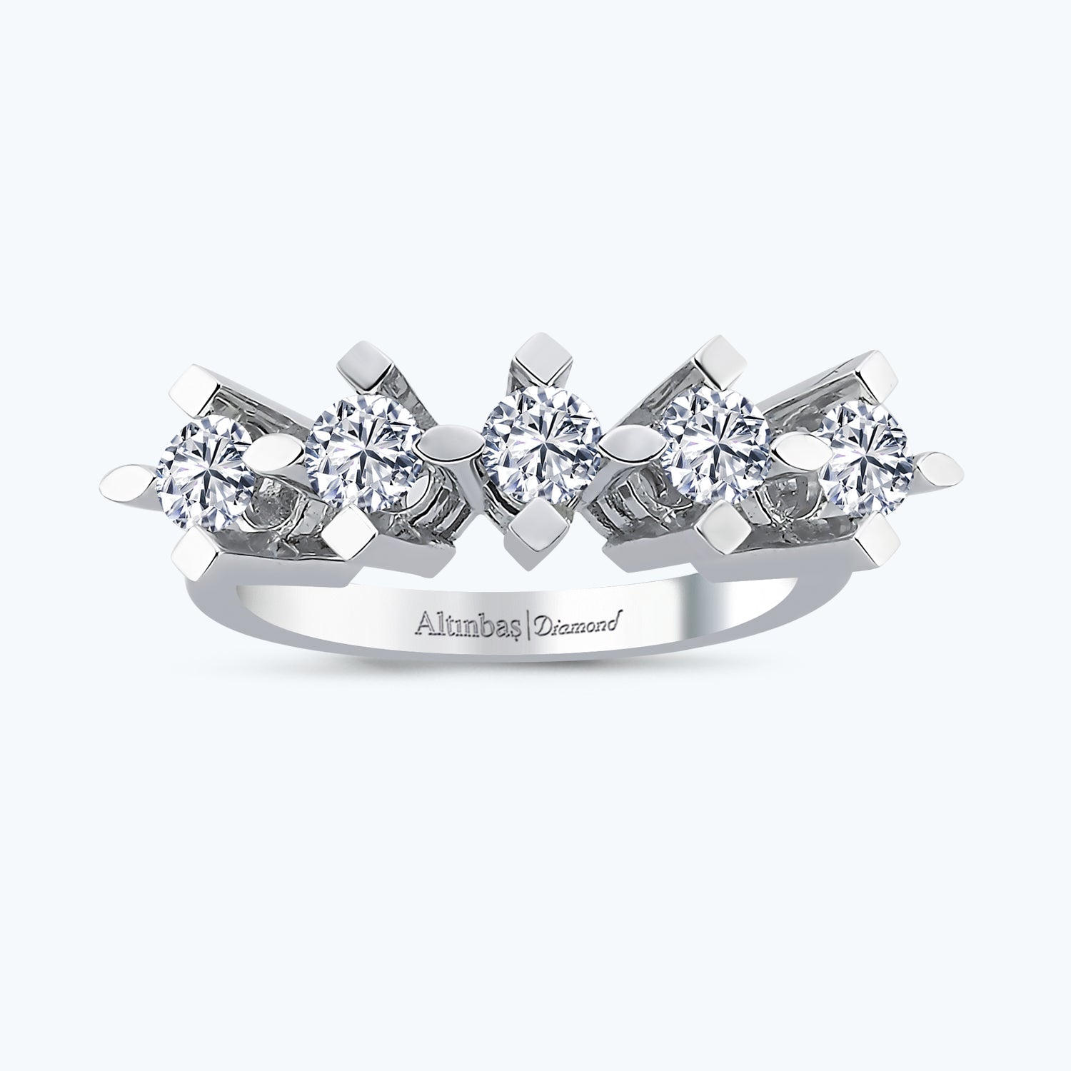 With a dainty design, the Altınbaş Jewellery Five Stone Diamond Ring is carefully handcrafted from 14ct Solid Gold with the most sparkling pure diamond selected and carefully set by experienced craftsmen.