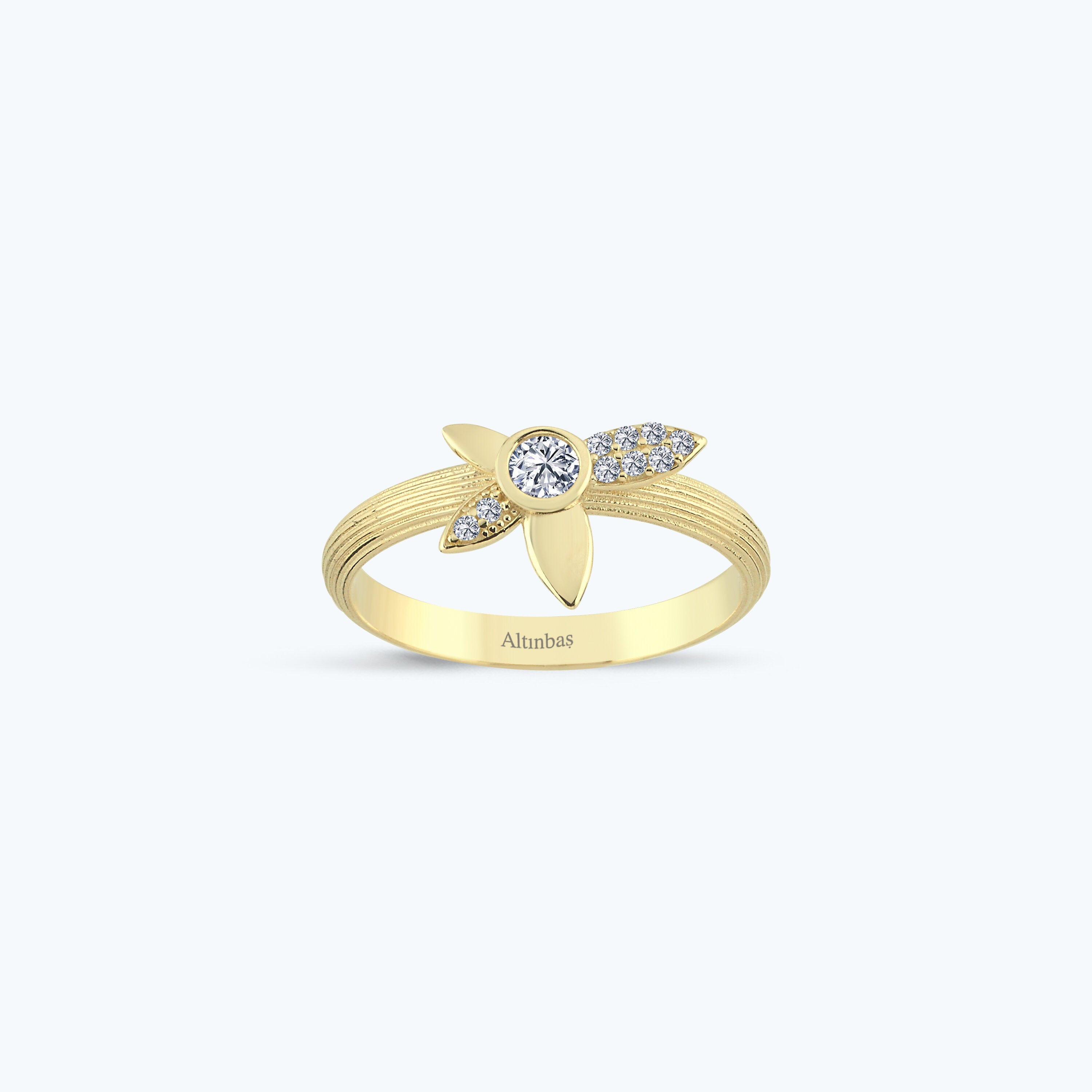 Flower Gold Ring with Stone