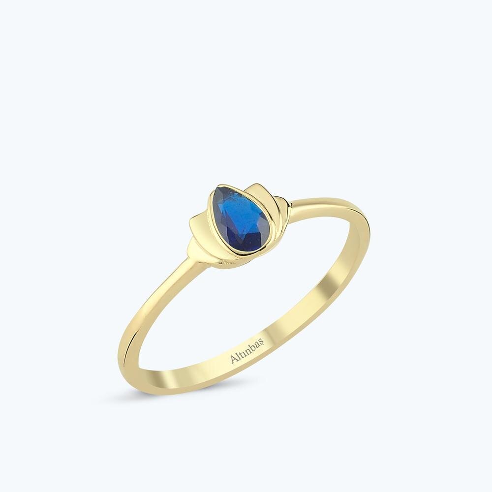 Homepage > > Cubic Zirconia > Gold Lotus Flower Ring with Dark Blue Stone