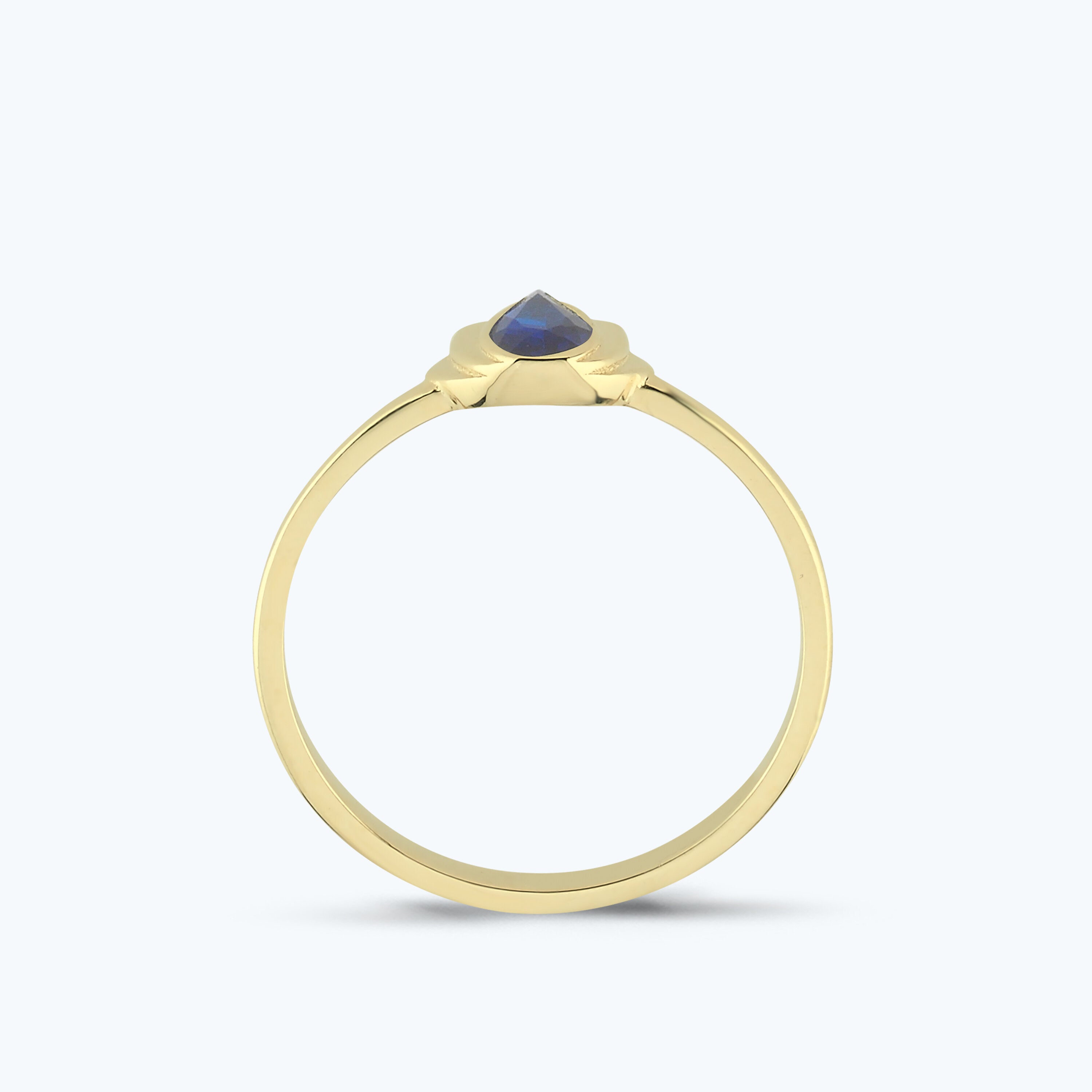 Gold Lotus Flower Ring with Dark Blue Stone