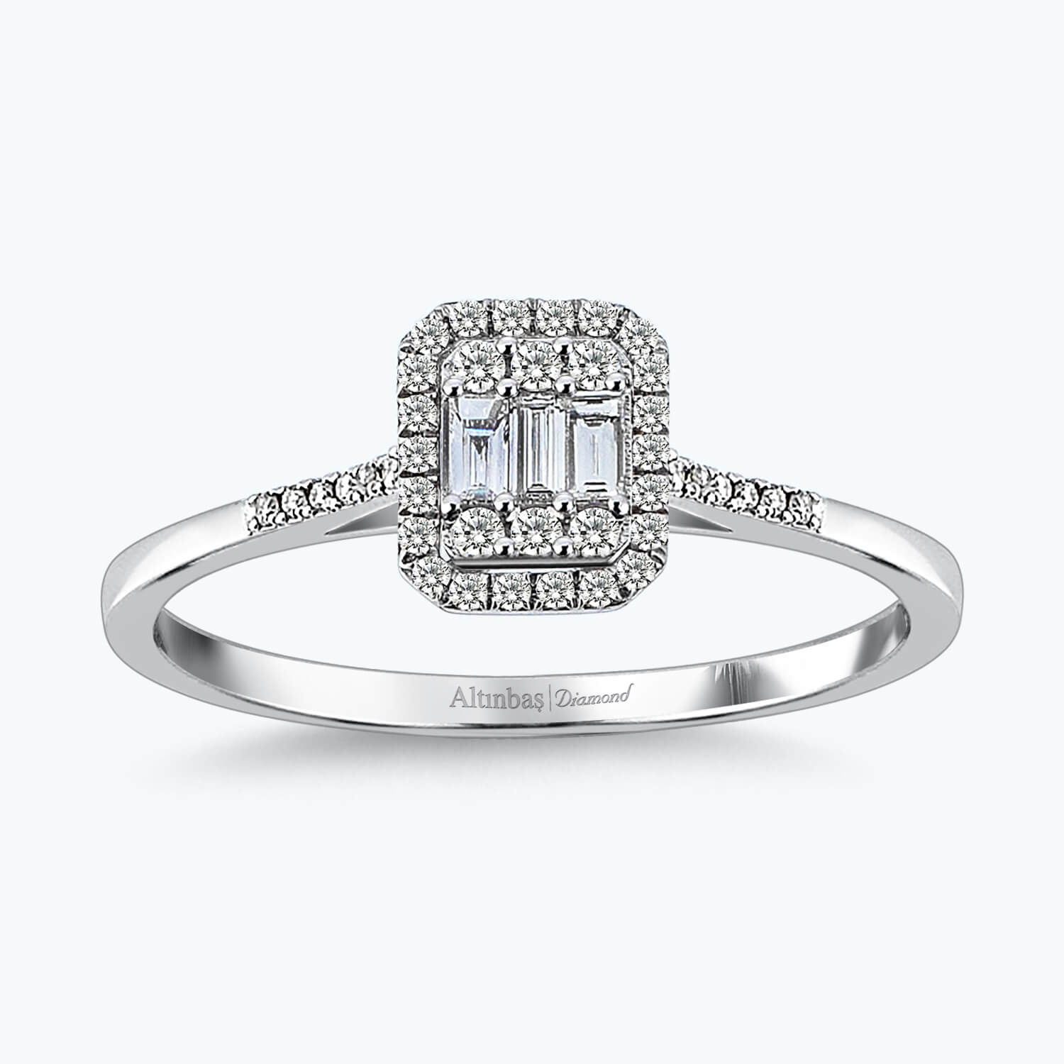 Introducing the Baguette Diamond Ring from Altınbaş Jewellery, a piece that truly embodies sophistication and quality. Meticulously crafted in an 8K white gold setting, this ring is a testament to the exquisite craftsmanship that our brand represents. The white gold not only provides a durable and elegant base but also enhances the sparkle of the diamonds, making it an ultimate expression of your personal style. The star of this ring is the Baguette diamond. Known for its unique rectangular shape, the Baguette diamond offers a distinct, sophisticated appeal. The diamond is intricately set, offering a regal look that is sure to turn heads. This ring is not just a piece of jewellery, it's a masterpiece that enhances the value of special moments. This ring is a part of our Wedding Collection, making it a perfect choice for engagements. It serves as a strong symbol of the emotional bond between two individuals. The side stones that accompany the Baguette diamond add to the beauty of the ring, symbolising the purity of the heart. The Baguette Diamond Ring is more than just a piece of jewellery. It's a statement of love, a testament to commitment, and an emblem of enduring elegance. This ring is not just a purchase; it's an investment in a timeless piece that will be cherished for generations to come. With Altınbaş Jewellery, you're not just buying a ring; you're investing in a piece that will become a part of your love story. This Baguette Diamond Ring is the perfect blend of style, elegance, and meaning, making it a piece that you will treasure forever.