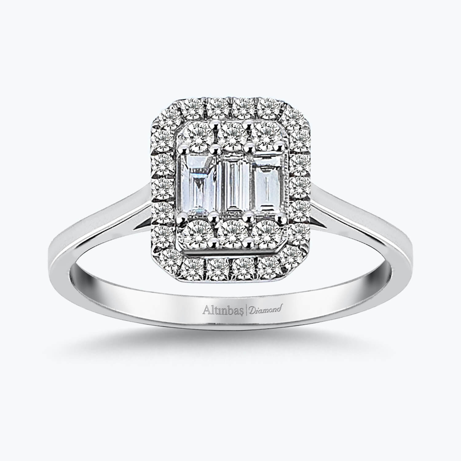 Introducing Altınbaş Jewellery's Baguette Diamond Ring, a piece that is more than just a ring - it's a testament to your unique love story. This exquisite piece is crafted from 14K white gold, a material known for its durability and timeless appeal. The white gold setting offers a contemporary touch, making it a perfect choice for those who appreciate modern elegance. The Baguette Diamond Ring is adorned with meticulously selected diamonds, adding a touch of sparkle that is sure to catch the eye. Each diamond is carefully set to maximise its brilliance, creating a dazzling display that beautifully complements the white gold band. This engagement ring is not just a symbol of commitment, but also a piece of art that emanates the energy of the sun. The radiant diamonds capture the light and reflect it back in a burst of brilliance, much like the sun's rays. This radiant energy is a symbol of the warmth and passion of your love story. Altınbaş Jewellery prides itself on creating pieces that perfectly blend beauty and style. The Baguette Diamond Ring is no exception, demonstrating a harmony of beauty and style that is simply irresistible. Its elegant design and sparkling diamonds make it a statement piece that is sure to turn heads wherever you go. This ring is more than just a piece of jewellery; it's a reflection of the love and commitment that you share with your partner. It's a symbol of your unique love story, beautifully captured in a piece of jewellery that you can cherish forever. Make your engagement even more special with Altınbaş Jewellery's Baguette Diamond Ring. It's more than just a ring - it's a symbol of your love, a testament to your unique love story.