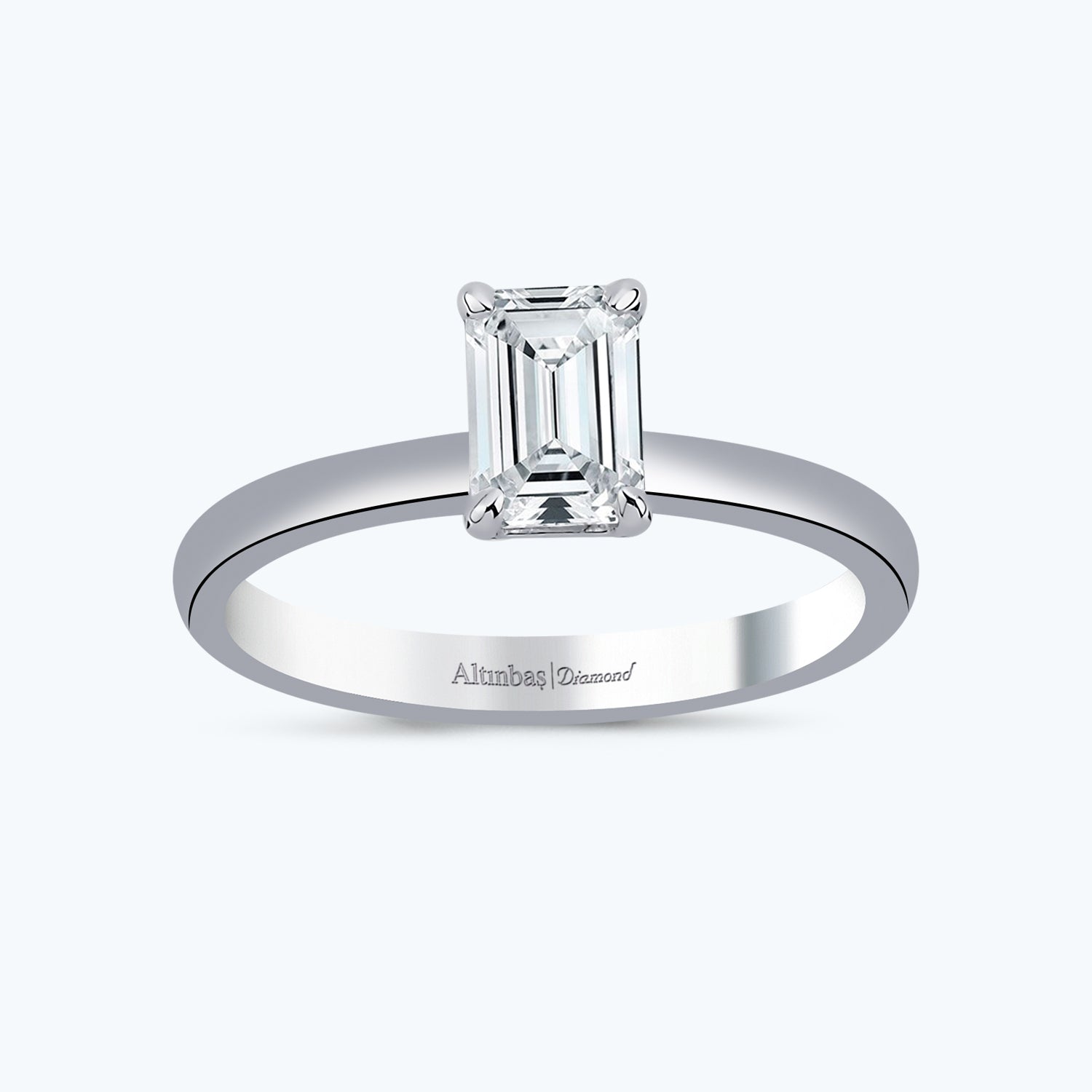 Introducing the Diamond Engagement Ring from Altınbaş Jewellery, a symbol of the most important step of your life. This exquisite piece is crafted from 14K white gold, a testament to its premium quality and enduring charm. The white gold brings a contemporary touch to this classic piece, making it a perfect choice for the modern woman who appreciates intricate design and timeless elegance. The highlight of this ring is the emerald cut diamond, which is a marvel in itself. The emerald cut is renowned for its ability to showcase the intricate beauty of the earth's most precious stone, the diamond. This cut brings out the diamond's brilliance and clarity in a way that few other cuts can match. Each facet of the diamond is meticulously cut and polished, reflecting light in the most enchanting manner. This engagement ring is more than just a piece of jewellery; it's a promise of a lifetime. When you present this ring, you're not just offering a beautiful piece of jewellery, but a symbol of your commitment and love. The ring's design is a harmonious blend of traditional sophistication and modern aesthetics, making it a versatile piece that will suit any style. Whether it is worn every day or reserved for special occasions, this ring will always stand out, just like your love for each other. Altınbaş Jewellery is renowned for creating pieces that embody sophistication and quality, and this Diamond Engagement Ring is no exception. It is a piece that will be cherished for a lifetime, a reminder of the moment when two lives become intertwined forever. Remember, an engagement ring is not just a ring; it's a symbol of your journey together, a journey that starts with the most important step of your life. Make it memorable with this exquisite Diamond Engagement Ring from Altınbaş Jewellery.