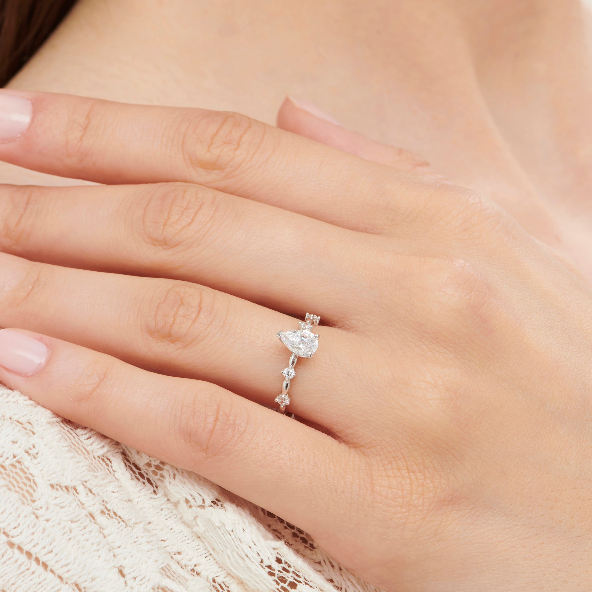 Introducing the Gold Drop Ring from Altınbaş Jewellery, a name synonymous with elegance and quality. This stunning piece is a testament to our commitment to excellence and a perfect embodiment of the unique love story it is set to represent. Crafted from lustrous 14K white gold, this ring exudes a luxurious charm that is hard to resist. The Gold Drop Ring is adorned with a dazzling cubic zirconia, a gemstone that is known for its brilliance and durability. This gemstone is meticulously set to capture and reflect light, creating a sparkling effect that is truly mesmerising. The cubic zirconia, much like your love, signifies strength and resilience, promising to withstand the test of time. The design of this ring is a perfect blend of classic and contemporary. The white gold band, with its smooth finish, provides a timeless appeal, while the drop design adds a modern twist, making it a versatile piece that can complement any outfit, whether it's a casual brunch or a formal dinner. This engagement ring is not just a piece of jewellery, it is a symbol of love and commitment. It is perfectly curated for the stylish woman who appreciates the finer things in life and is not afraid to flaunt her individuality. The Gold Drop Ring is more than a beautiful accessory, it is a statement piece that tells a story of love, strength and resilience. Choose the Gold Drop Ring from Altınbaş Jewellery to embark on a journey of love and commitment. It is not just a ring, it is a promise of a lifetime.
