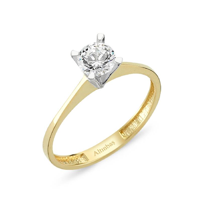 Presenting the Solitaire Gold Ring from Altınbaş Jewellery, a piece that truly manifests sophistication and elegance. This exquisite ring is a harmonious blend of style and quality, designed to make a statement. Crafted with meticulous attention to detail, it is the perfect symbol of prosperity and success, embodying the essence of luxury and refinement that Altınbaş is renowned for. This stunning piece is made from 14K gold, a testament to its high-quality craftsmanship. The gold composition, both yellow and white, adds a unique depth to the ring, making it a versatile piece that complements any outfit. The harmonious balance of these two shades of gold is a true reflection of Altınbaş's commitment to innovative design and superior quality. The ring features a solitaire cubic zirconia stone, round in shape, which sits majestically at its centre. This stone, known for its brilliant sparkle, adds an extra touch of glamour to the ring. Its round cut enhances the ring's aesthetic appeal, perfectly catching the light to deliver a dazzling display. The Solitaire Gold Ring is more than just a piece of jewellery. It's a statement, a symbol of success, and a manifestation of sophistication. It's a piece that you don't just wear, but rather, one that you showcase, allowing its beauty and elegance to shine through. Whether you're purchasing this ring for yourself or as a gift for a loved one, it's sure to impress. Its timeless design and superior quality make it a piece that can be cherished for generations. Choose Altınbaş's Solitaire Gold Ring, and embrace the luxury and sophistication that comes with it.