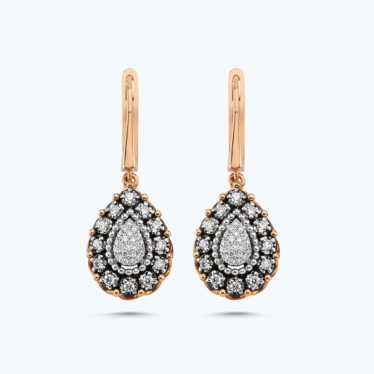 Introducing the Rose Cut Diamond Earrings from Altınbaş Jewellery, a truly exceptional piece from our Wedding Collection. Crafted with precision and care, these earrings are designed to embody sophistication, quality, and a timeless sense of style. Each earring features an exquisite pear-shaped diamond, meticulously cut in a way that enhances its natural brilliance. The diamonds are set in 8k gold, a precious metal known for its durability and lustrous finish. The choice of pink gold adds a touch of warmth and femininity, making these earrings a perfect accessory for any occasion. These earrings are not just pieces of jewellery, they are a symbol of love and devotion. They are an elegant gift that expresses your deep commitment and affection, making them an ideal choice for anniversaries, birthdays, or simply as a spontaneous gesture of love. The dangle design of these earrings adds a touch of glamour and sophistication, ensuring they will be a standout addition to any jewellery collection. They will sway gently with every movement, catching the light and drawing attention to the wearer's grace and elegance. These Rose Cut Diamond Earrings are more than just a piece of jewellery. They are a timeless piece of art, invoking feelings of warmth and comfort. They are an emblem of love and devotion, a testament to the enduring bond between two people. Choose Altınbaş Rose Cut Diamond Earrings for a gift that will be cherished for a lifetime, a piece that will never go out of style. They are not just a purchase, but an investment in love and beauty.