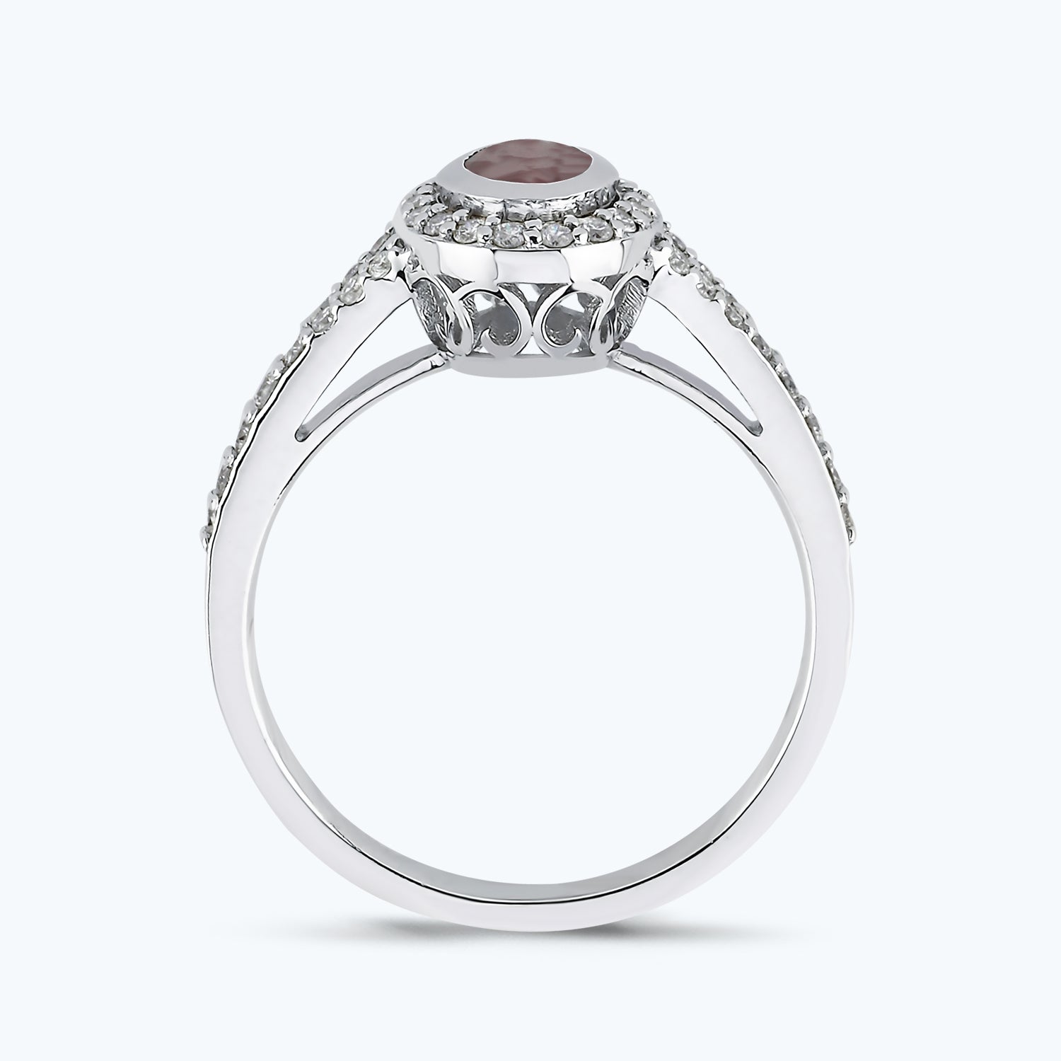 Introducing our Ruby Diamond Ring, a stunning piece from Altınbaş Jewellery that is the epitome of refined taste. This ring is meticulously crafted from 14K white gold, a material renowned for its durability and timeless appeal. The white gold setting serves as a perfect backdrop for the vibrant gemstones, enhancing their brilliance and creating a perfect balance of style and elegance. At the heart of this exquisite ring lies a bold, assertive ruby. This oval-shaped gemstone is not just a sight to behold but is also a symbol of infinite love. The ruby’s deep, fiery red hue is captivating, making it a standout feature of this luxurious piece. Complementing the ruby are dazzling diamonds, intricately placed around the gemstone. Their shimmering sparkle adds an extra layer of sophistication to the ring. The diamonds are not just decorative elements; they are expressions of timeless beauty, adding a touch of magnificence to the overall design. This Ruby Diamond Ring is more than an engagement ring; it's a testament to a love that's eternal. The combination of ruby and diamond symbolises an unbreakable bond, making it an ideal choice for couples looking to celebrate their everlasting love. Whether you're seeking the perfect engagement ring or a special piece to add to your jewellery collection, this Ruby Diamond Ring from Altınbaş Jewellery is a stunning choice. Its bold design and luxurious elements reflect a perfect blend of style, elegance, and love. This ring is not just a piece of jewellery; it's a statement of love and a symbol of a bond that's eternal and unbreakable. Experience the refined taste of Altınbaş Jewellery with this magnificent Ruby Diamond Ring.