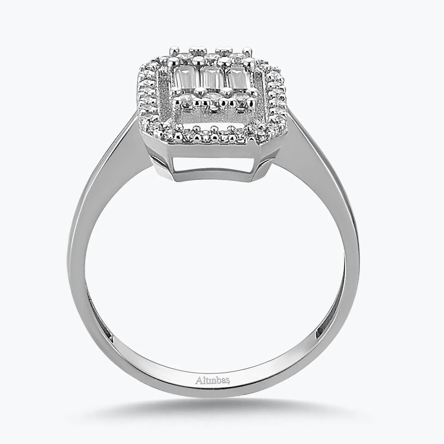 Introducing the Baguette Gold Ring from Altınbaş Jewellery, a symbol of a unique love story that is as sophisticated and shiny as the woman who wears it. This stunning piece is meticulously crafted from 14K white gold, a testament to the quality and craftsmanship that Altınbaş is renowned for. The ring features a beautiful baguette-cut cubic zirconia gemstone, set in a way that captures and reflects light, ensuring it sparkles from every angle. This exquisite gemstone is a harbinger of good fortune, and its gleaming presence on your finger serves as a constant reminder of the love that surrounds you. The ring's design strikes a perfect balance of shine and subtlety. Its elegant simplicity ensures it never overshadows your natural beauty, instead enhancing it with a touch of sophistication and luxury. This stunning piece is not just a ring, but a statement of style and elegance. Ideal for engagements, this ring is more than just a piece of jewellery. It is a promise of love, a symbol of commitment, and a testament to the unique love story that you and your partner share. Every time you glance at this beautiful ring, you'll be reminded of the special moments that have brought you together. The Baguette Gold Ring is a perfect choice for women who appreciate the finer things in life. Its timeless elegance ensures it will never go out of style, making it a piece to cherish for a lifetime. With Altınbaş Jewellery, you're not just buying a product, you're investing in a piece of art that will continue to shine as brightly as your love.