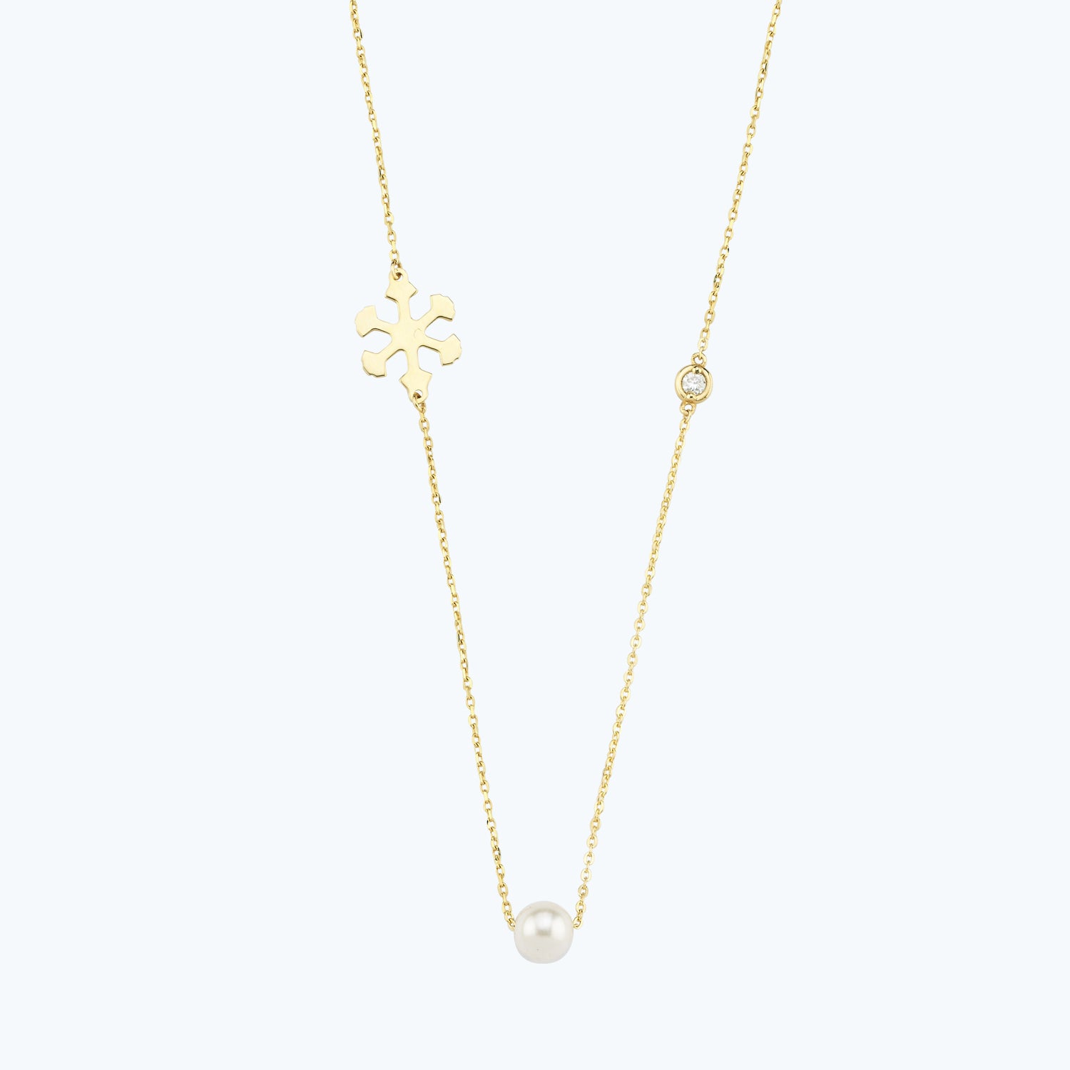 With a dainty design, the Altınbaş Jewellery Snowflake Diamond Necklace is carefully handcrafted from 14ct Solid Gold with the most sparkling pure diamond selected and carefully set by experienced craftsmen.