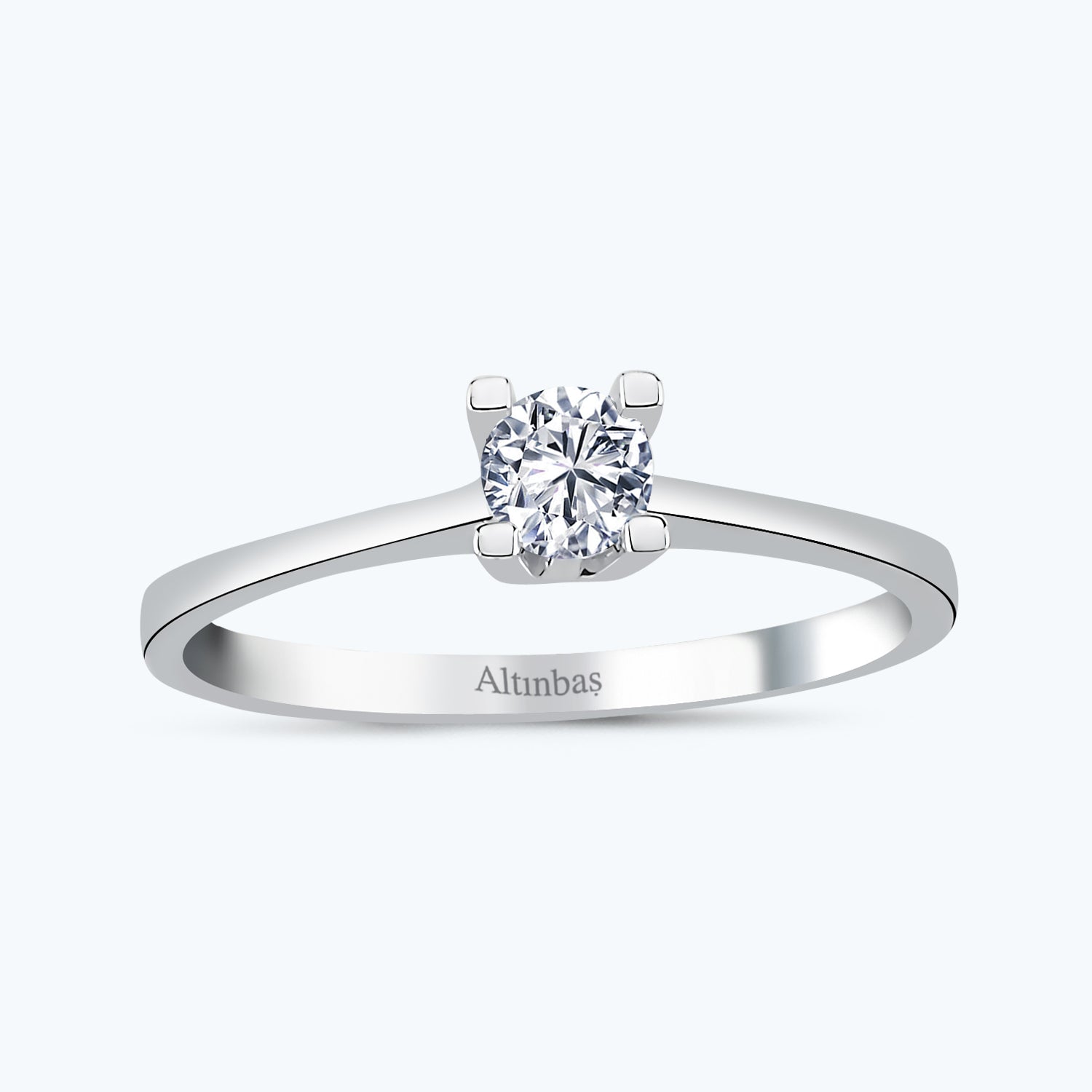 Introducing the Solitaire Gold Ring from Altınbaş Jewellery, a piece that embodies timeless elegance and sophistication. This exquisite ring is crafted from 14K white gold, a material renowned for its durability and lustrous sheen. The white gold setting provides a classic and versatile backdrop, allowing the ring to seamlessly blend with any outfit, be it casual or formal. At the heart of this ring lies a round cubic zirconia. This gemstone, renowned for its brilliance and fire, is cut in a round shape to maximise its sparkle, creating a continuous circle of brilliance that is truly mesmerising. The cubic zirconia is set in a solitaire style, a design choice that allows the gemstone to take centre stage and catch the light from every angle. Perfectly designed for women, this ring is not just a piece of jewellery, but a manifestation of sophistication. Its clean lines and minimalistic design reflect a sense of refined taste and an appreciation for the finer things in life. The Solitaire Gold Ring is more than just a ring; it's a unique love story. It symbolises the unending bond between two people, making it the perfect choice for an engagement ring. The solitaire setting represents the singular love between two individuals, while the continuous circle of the ring represents an eternal promise of love and commitment. Every time you glance at this stunning piece from Altınbaş Jewellery, you'll be reminded of the timeless elegance and sophisticated style that it brings to your look. Whether you're purchasing it for yourself or as a gift for someone special, this ring is sure to make a lasting impression.