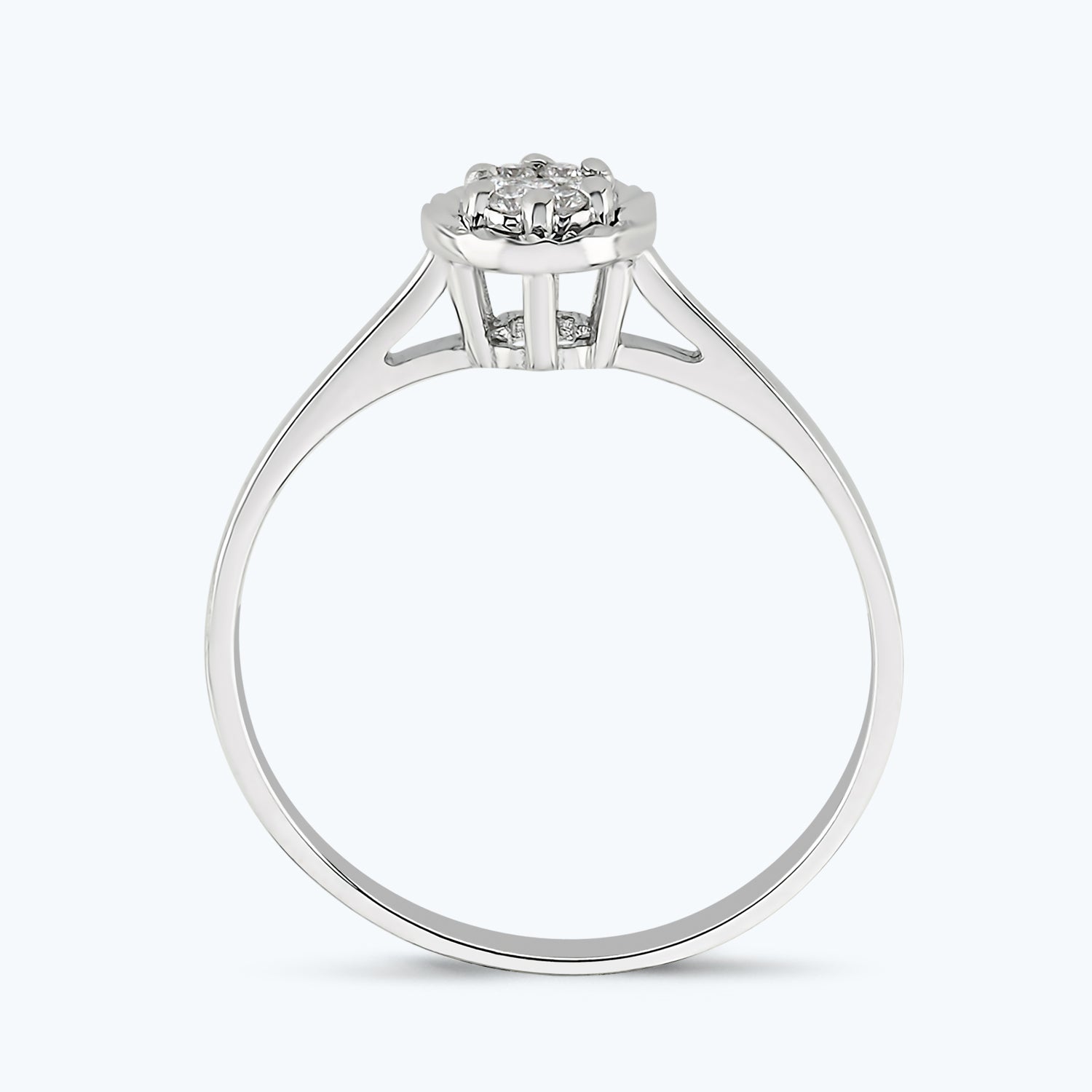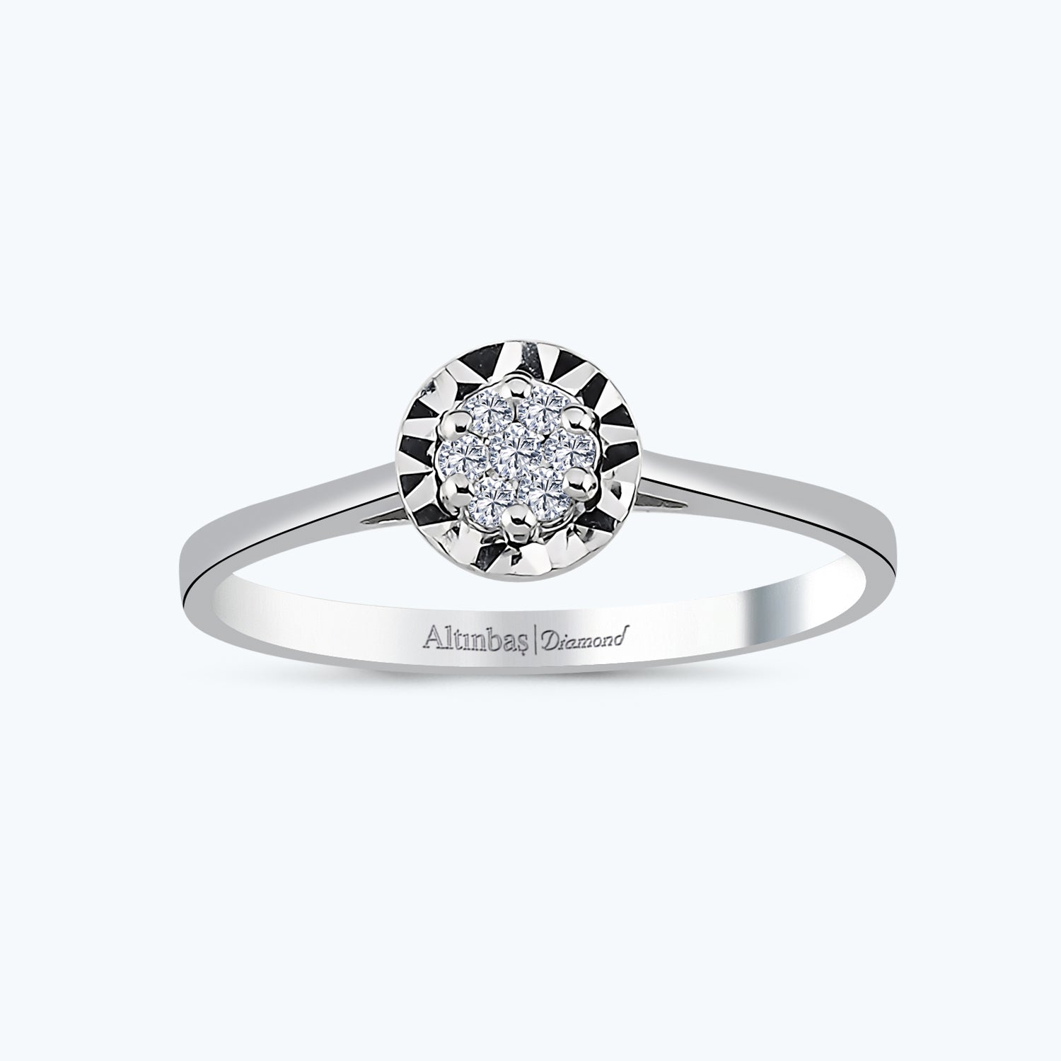 Presenting the Diamond Ring from Altınbaş Jewellery, a brand that epitomises sophistication and quality. This elegant piece is intricately designed to offer a regal look, perfectly suited for the woman who appreciates timeless elegance. Expertly crafted from 14K white gold, this ring radiates a warm and inviting glow. The gold's purity ensures durability and long-lasting shine, making it an investment piece that will stand the test of time. At the heart of this ring lies a round diamond, set in an illusion setting. This setting, a testament to our master craftsmen's skills, enhances the diamond's brilliance, making it appear larger and more radiant. The diamond's G colour grade signifies near colourlessness, adding to its exceptional sparkle and allure. The ring is an embodiment of sincerity in commitment, making it an ideal choice for an engagement ring. Its sophisticated design is a beautiful expression of your love and commitment, speaking volumes about your relationship's depth. This ring is not just a piece of jewellery; it's a symbol of eternal love and a promise of a lifetime. It's a tangible representation of your feelings, making your special moments even more memorable. Every detail of this ring has been meticulously considered, from the diamond's quality to the gold's richness, ensuring it meets Altınbaş Jewellery's high standards. This commitment to quality and detail is what sets us apart, making our pieces truly unique. Wearing this ring from Altınbaş Jewellery is a statement in itself, an expression of sophistication and style. It's designed for the modern woman who values quality, elegance, and timeless design. Let this ring be a testament to your impeccable taste and style.