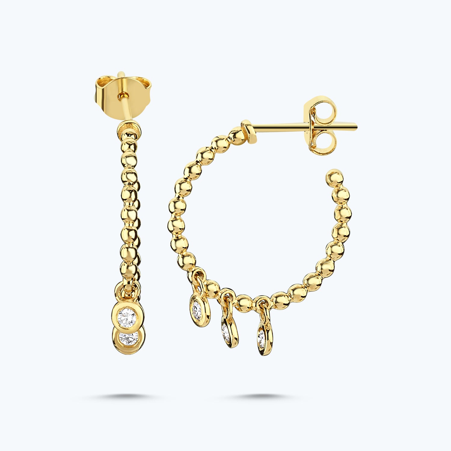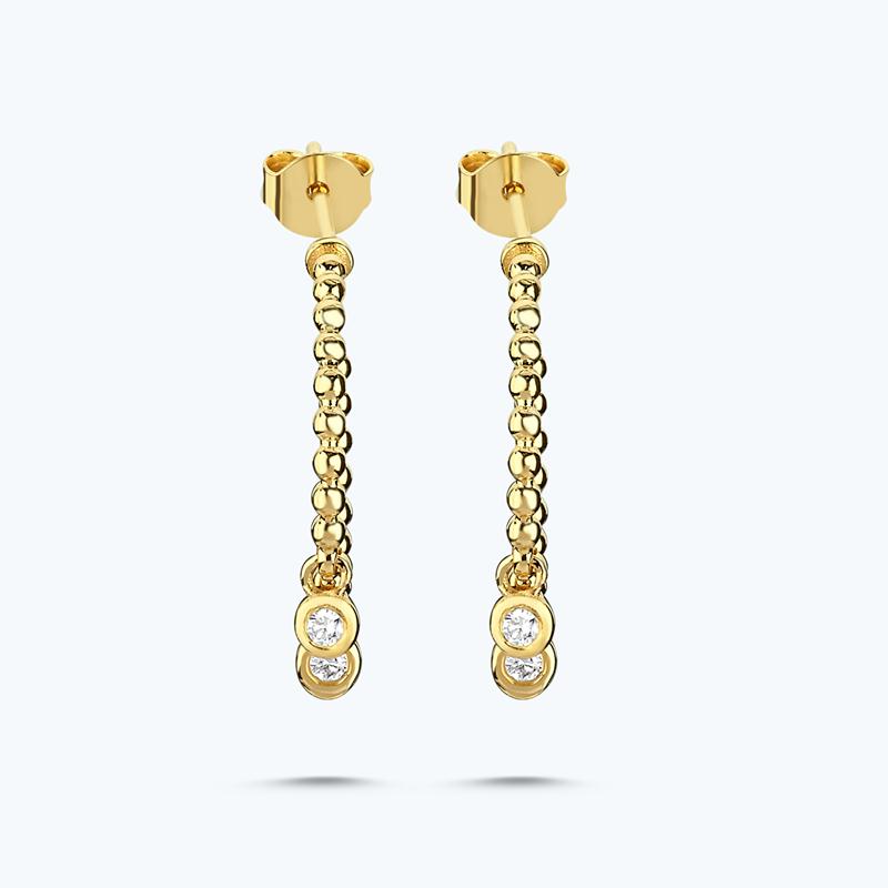 Introducing the Diamond Earrings from Altınbaş Jewellery, an epitome of elegance and sophistication. These earrings are not just accessories; they are a harmonious balance of style and grandeur, reflecting the brilliance of the sun in each meticulously designed piece. Crafted with utmost care, the earrings feature an exquisite round diamond, set in gleaming 14K gold. This combination of precious materials ensures a high-quality product that embodies the luxury and refinement synonymous with our brand. The gold setting provides a beautiful contrast to the diamond, enhancing its sparkle and making it a standout piece in any jewellery collection. The green hue of the diamond adds an intriguing twist to the traditional diamond earring. This unique colour adds a touch of individuality and makes the earrings an ideal choice for those seeking something a little different. The round cut of the diamond further enhances its brilliance, ensuring it catches the light from every angle. These earrings are a testament to Altınbaş Jewellery's commitment to quality and elegance. Each pair is designed to not only complement your style but also to add a touch of luxury to your everyday look. The 14K gold setting ensures durability, meaning you can enjoy the beauty of these earrings for years to come. Whether you're dressing up for a special occasion or adding a touch of glamour to your everyday attire, these Diamond Earrings from Altınbaş Jewellery are the perfect choice. They are more than just earrings; they are a statement of style, sophistication and quality.