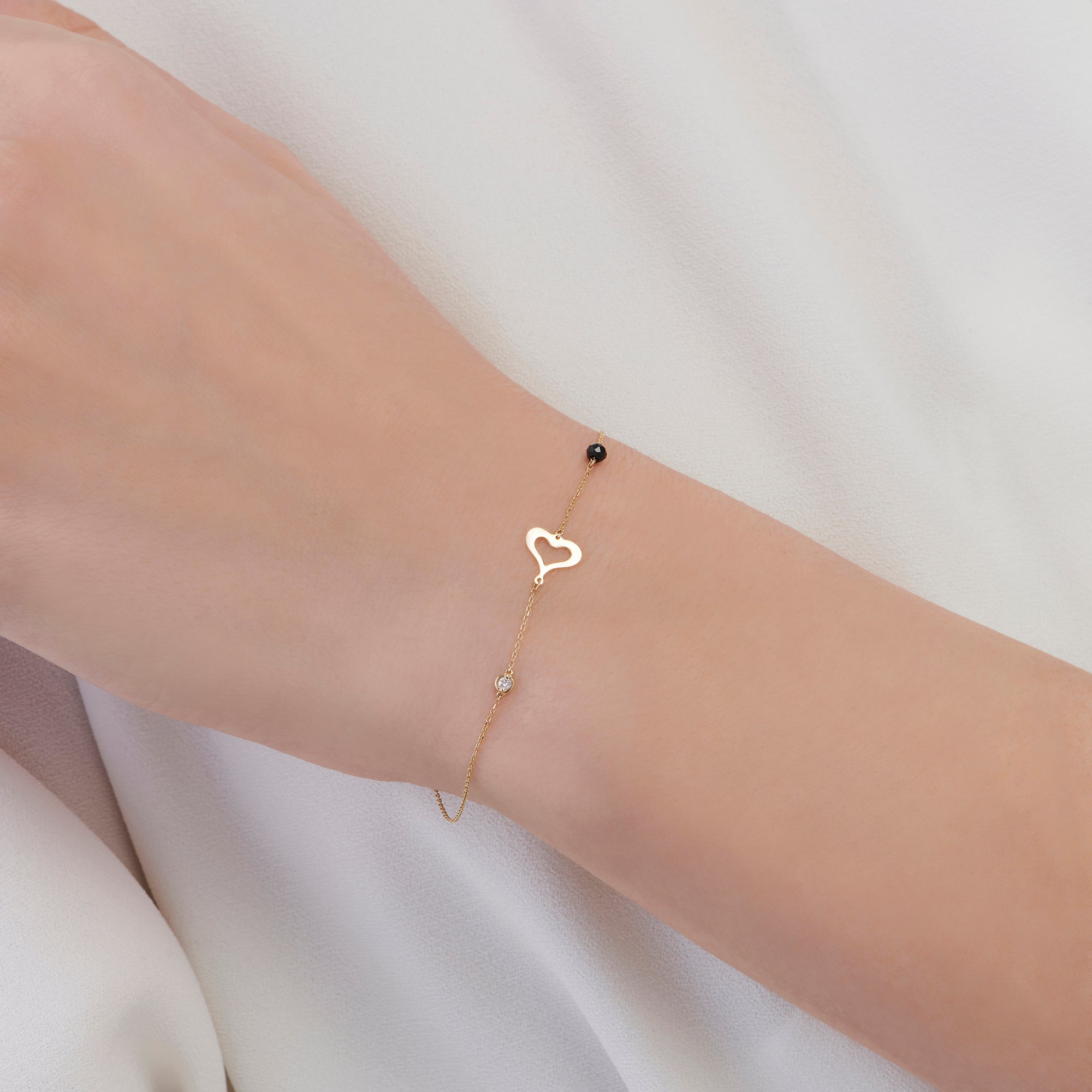 With a dainty design, the Altınbaş Jewellery Heart Diamond Bracelet is carefully handcrafted from 14ct Solid Gold with the most sparkling pure diamond selected and carefully set by experienced craftsmen.