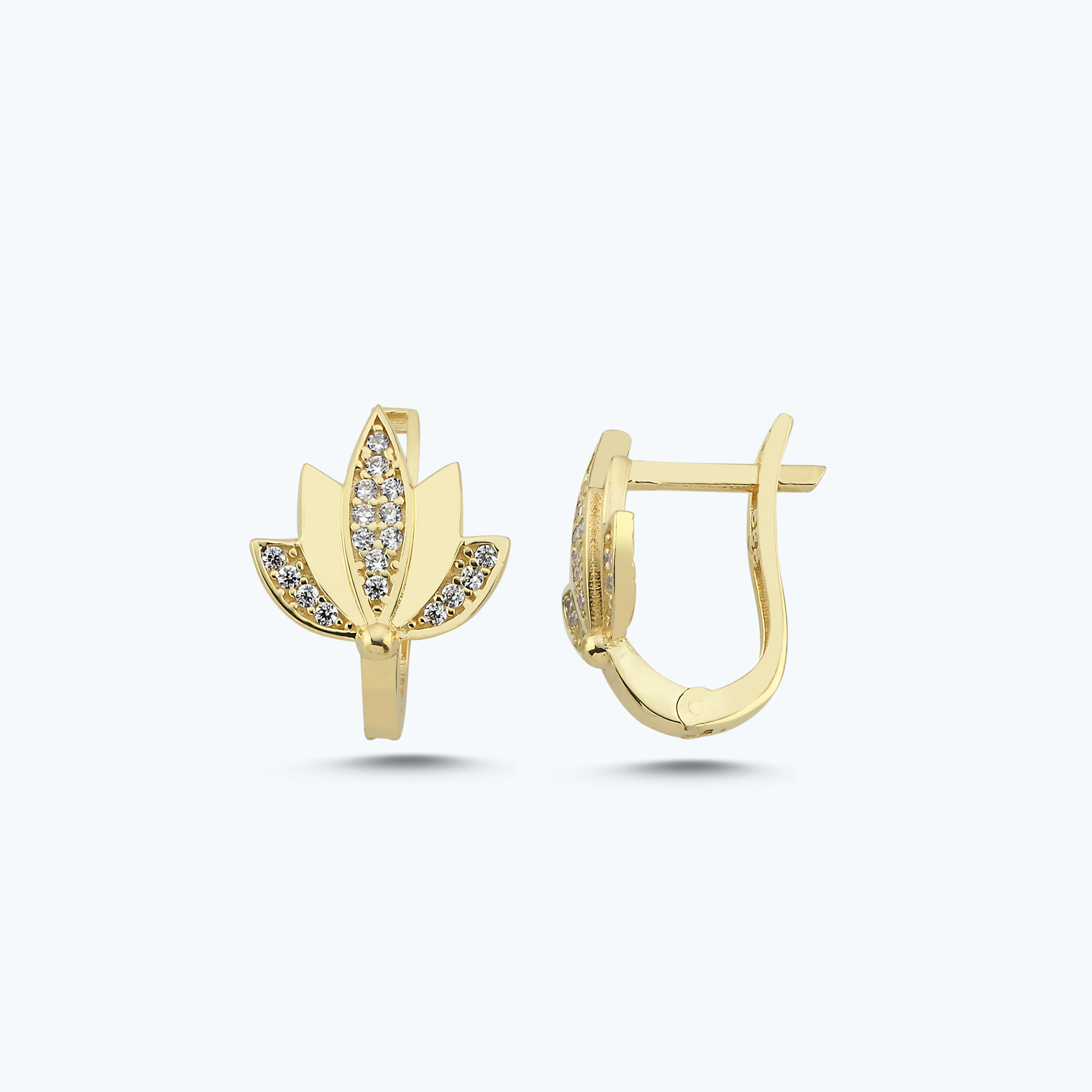 Gold Lotus Earrings with Stone