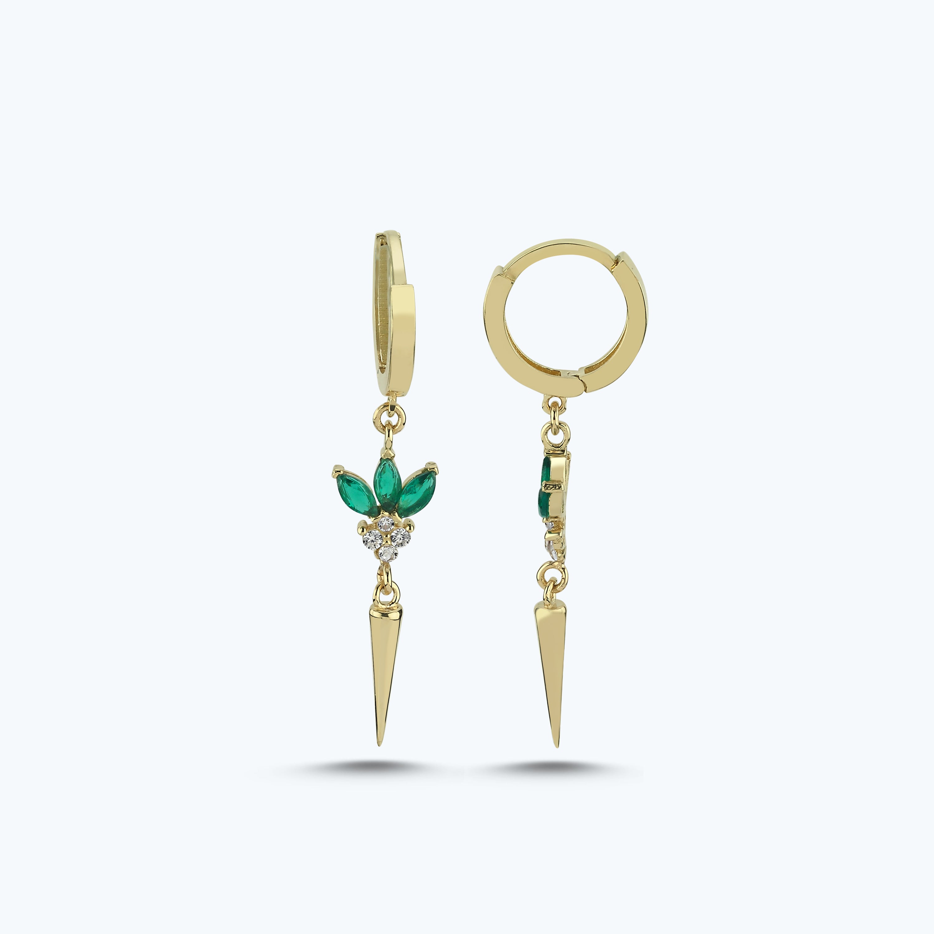Homepage > Jewellery > Earrings > Dangling Gold Hoop Earrings with Green Stone