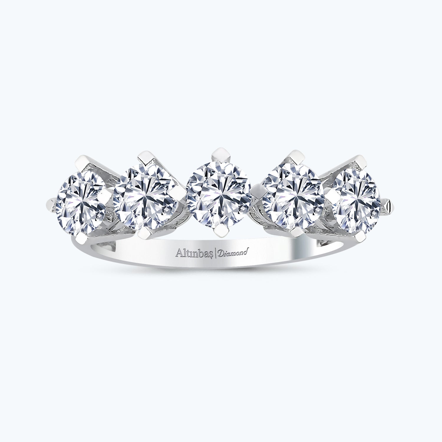 Introducing the 5 - Stone Gold Engagement Ring from Altınbaş Jewellery, a piece that truly encapsulates the captivating allure of gold. This exquisite ring is carefully crafted from 14K white gold, a testament to our commitment to using only the highest quality materials. Each of the five stones that adorn this ring is a round cubic zirconia, meticulously cut and set to display a radiant beauty that never fades. The eternal round of these stones is a symbol of the unending love and happiness that this ring represents. This engagement ring is more than just a piece of jewellery, it's a treasure that lasts forever, a tangible token of a promise made and a future to be shared. The gleaming white gold band serves as the perfect backdrop for the cubic zirconia stones, their sparkle enhanced by the contrast. The 5 - Stone Gold Engagement Ring is a perfect choice for those who appreciate the timeless elegance of gold and the dazzling brilliance of cubic zirconia. It's a ring designed to be as enduring as the love it signifies, a piece that will bring joy and happiness that lasts a lifetime. Whether you're planning a surprise proposal or choosing a ring together, this piece from Altınbaş Jewellery is sure to make the moment even more special. Each time you look at this ring, you'll be reminded of the love and commitment it represents. Experience the captivating allure of this 5 - Stone Gold Engagement Ring and let it be a part of your love story. With its eternal round of radiant beauty, it is an embodiment of the everlasting love and happiness that every couple deserves.