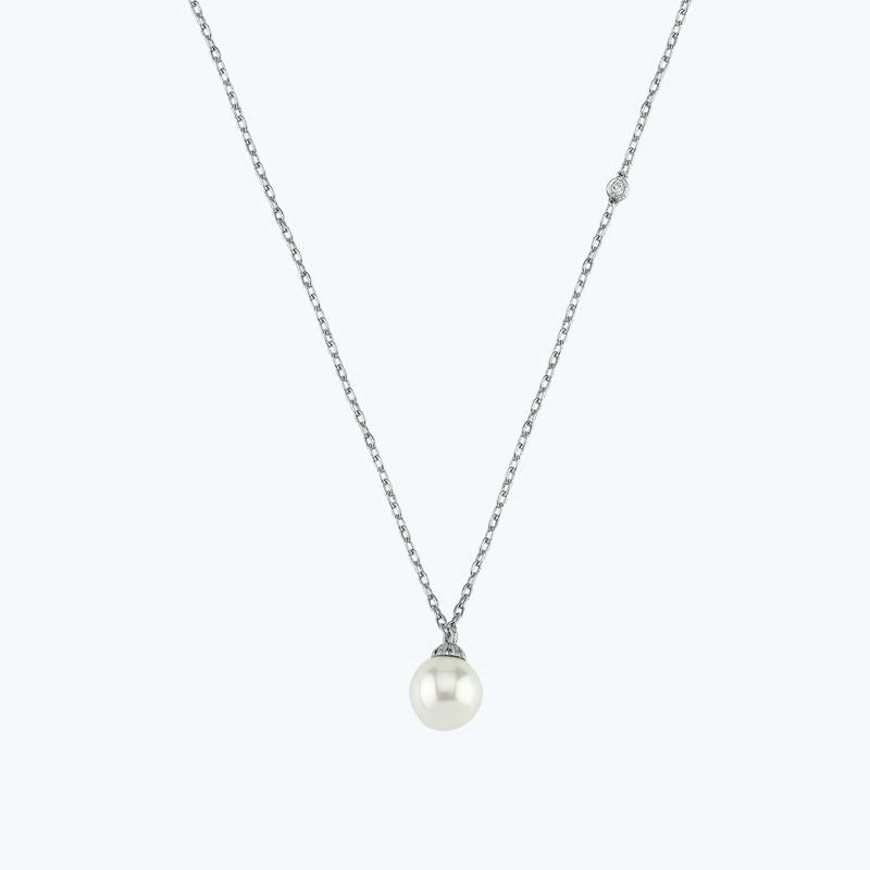 Homepage > > Diamond > Diamond Silver Pearl Necklace