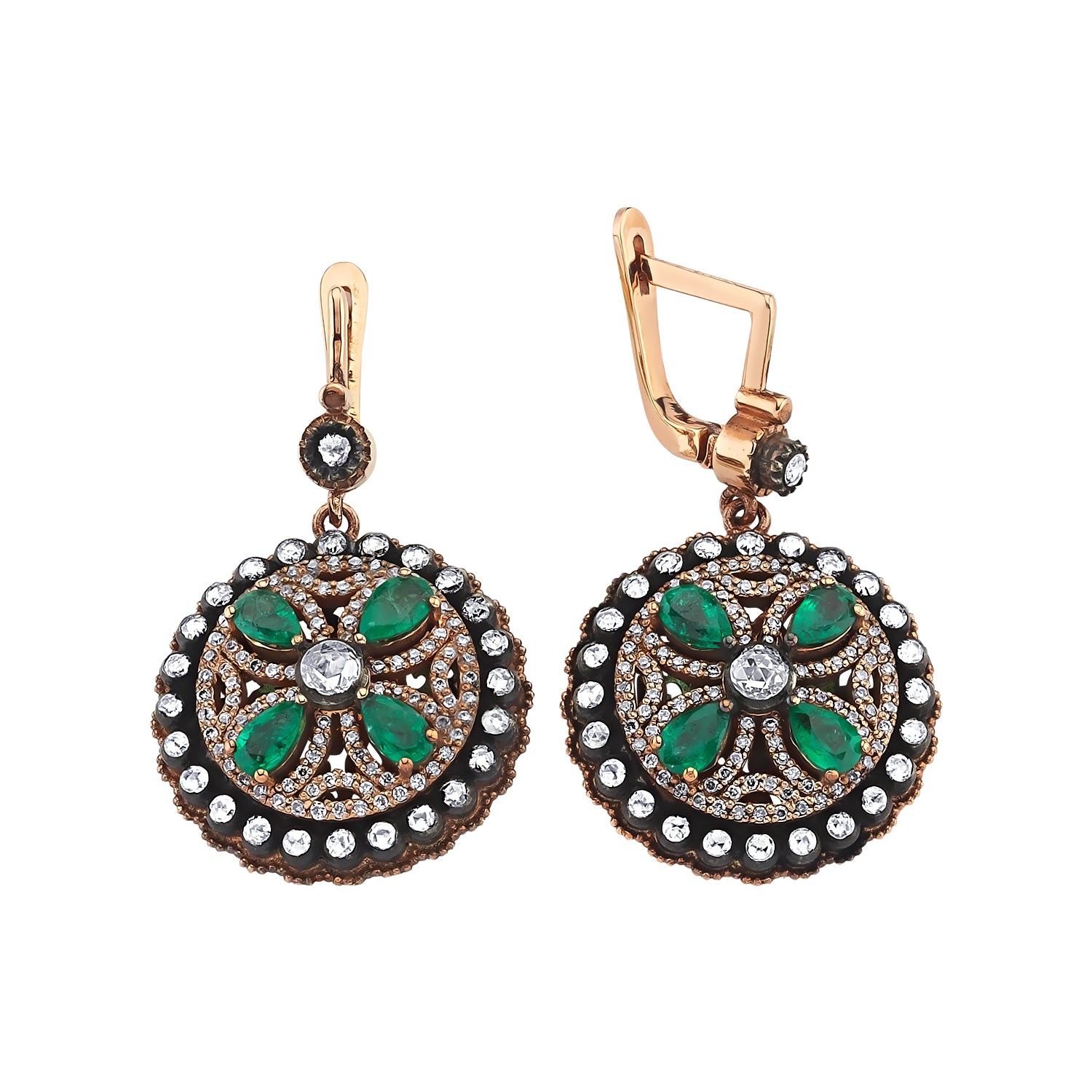 Introducing the Emerald Diamond Earrings from Altınbaş Jewellery, a statement of luxury that reflects an uninterrupted flow of grace and elegance. Crafted with utmost precision, these earrings are a perfect blend of vintage charm and modern sophistication. The earrings are beautifully made from 8K rose gold, a choice of metal that not only exudes a warm, pink hue but also offers durability for long-lasting wear. The rose gold setting serves as a stunning backdrop for the dazzling diamonds and emeralds, creating a dazzling and enchanting visual spectacle. Each earring features a pear-shaped emerald, a gemstone renowned for its vibrant colour and timeless beauty. These emeralds are surrounded by round, rose-cut diamonds, the brilliance of which is sure to leave you breathless. The combination of these precious stones creates a harmonious symphony of colours, making these earrings an ode to your colourful dreams. The design of these earrings signifies the strength of love, with each stone meticulously set to symbolise an emblem of the heart's deepest desires. The earrings serve as a gentle reminder of love and affection, making them an ideal gift for the special woman in your life. The Emerald Diamond Earrings are not just a piece of jewellery; they are an expression of timeless beauty. Whether it's for a special occasion or simply to add a touch of elegance to your everyday look, these earrings are sure to enhance your style quotient. Experience the allure of these exquisite earrings from Altınbaş Jewellery, a testament to the brand's commitment to quality and sophistication.