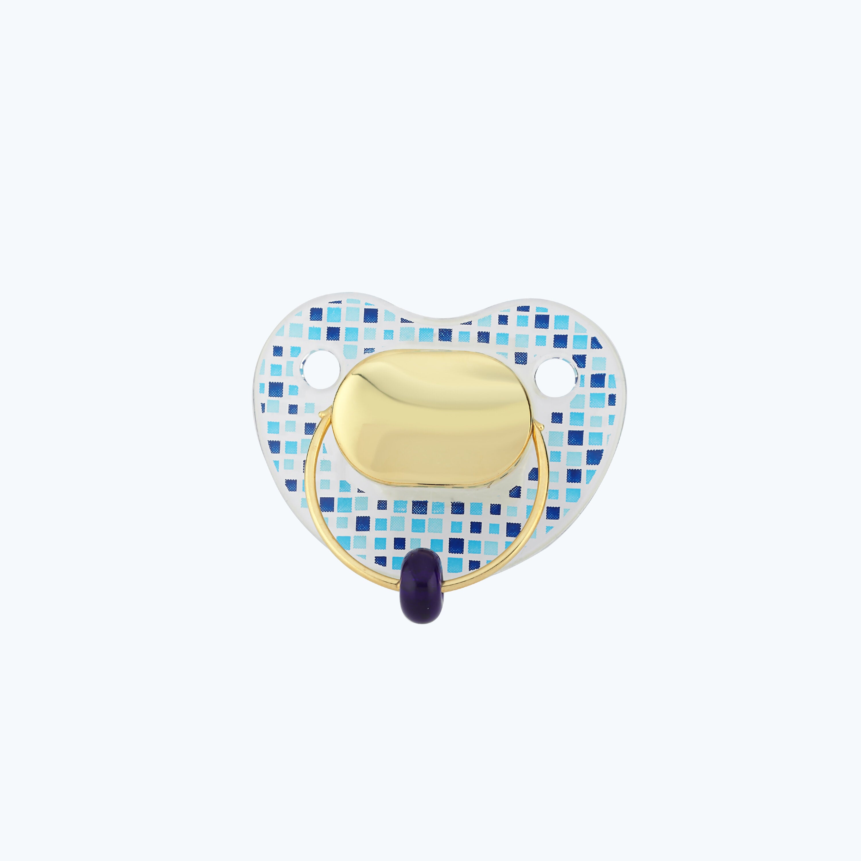 Homepage > > New Arrivals > Gold Baby Pacifier with Blue Stone
