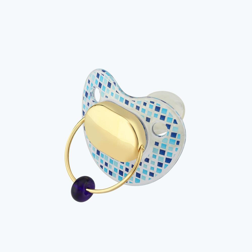 Gold Baby Pacifier with Blue Stone