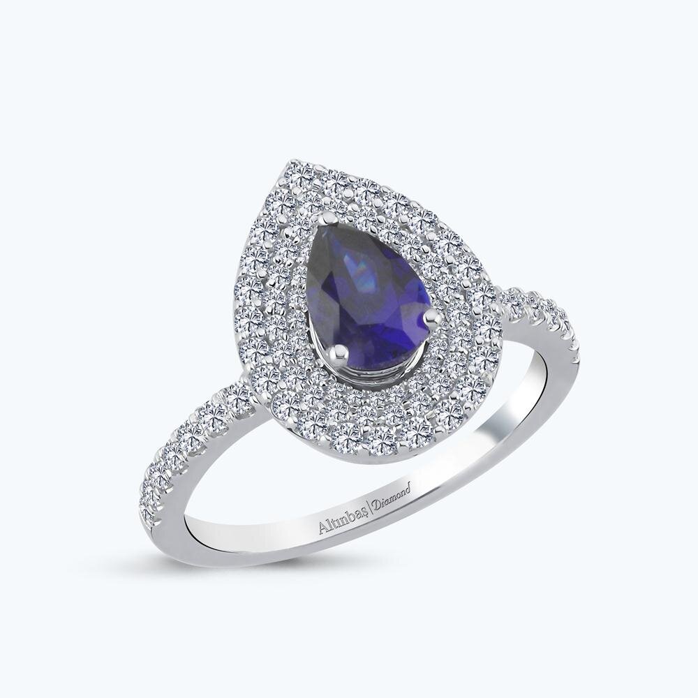 Homepage > > Sapphire > Pear Cut Sapphire Diamond Ring